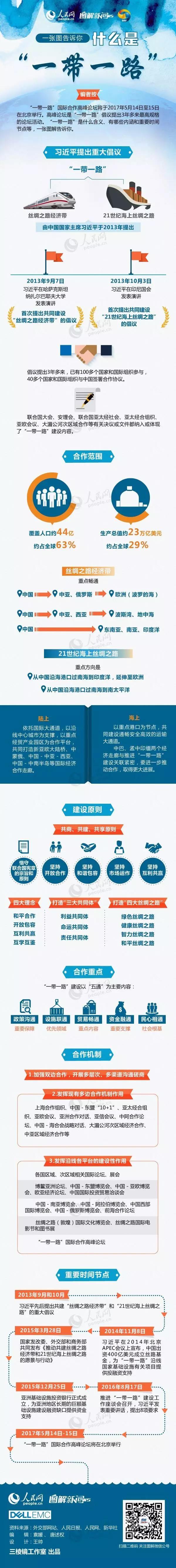 图解:一张图告诉你什么是“一带一路” 来源:支部生活 2017/05/15 图解:一张图告诉你什么是“一带一路” 2017-05-15 “一带一路”(英文:The Belt and Road,缩写B&R)是“丝绸之路经济带”和“21世纪海上丝绸之路”的简称。它将充分依靠中国与有关国家既有的双多边机制,借助既有的、行之有效的区域合作平台,一带一路旨在借用古代丝绸之路的历史符号,高举和平发展的旗帜,积极发展与沿线国家的经济合作伙伴关系,共同打造政治互信、经济融合、文化包容的利益共同体、命运共同体和责任共同体。